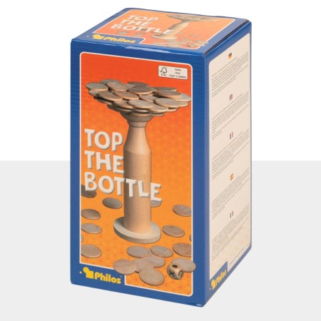 Top the Bottle de Philos es un juego de mesa de habilidad y pulso en el que la botella se convierte en tu “torre” de equilibrio. Saca fichas de la bolsa y colócalas sobre la parte superior sin que caiga ninguna. Si se te cae una, te la quedas en tu montón. Al final gana quien tenga menos fichas.