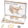 ¡Un clásico de la aviación, nuestro BIPLANO es un modelo artesanal de madera con un motor impulsado por bandas de goma, ruedas y una hélice giratoria!