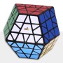 Este rompecabezas permite giros en torno a cada cara y, además, ofrece movimientos jumbling que conectan distintas capas, deformando el cubo y multiplicando su complejidad. El cubo tiene centros, esquinas y aristas, pero lo interesante es que combina estas piezas de varias formas, ya que tiene esquinas con 3 colores y esquinas con 4 colores, además de 3 tipos de aristas y 2 tipos de centros.